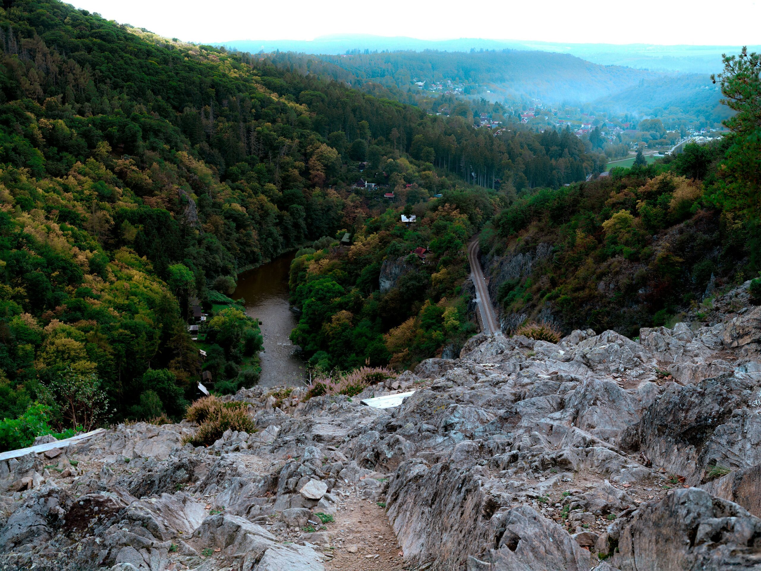 Grass sways, trees lean lazily in the wind, houses rest peacefully above the valley.