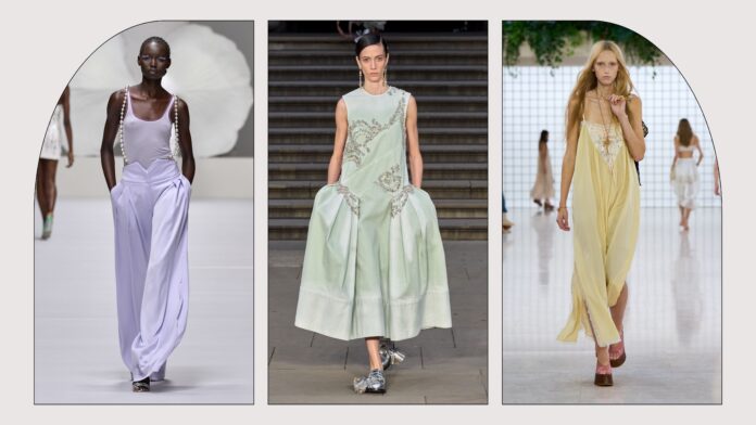 Soft, dusted pastels also make a strong return, but in a more mature form. Think sage green instead of mint, powder blue instead of baby blue, blush rose rather than pink. These tones are gentle on the eyes and the nervous system. They bring softness without fragility and are especially present in knitwear, flowy dresses, and tailored pieces meant to feel breathable rather than restrictive.